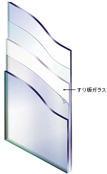 道路に面した部屋、寝室、玄関など、外からの視線を遮りたい場所の窓ガラスには、不透視性のすり板ガラスを使用したスペーシア守をおすすめします。優れた性能はそのままに、プライバシー保護効果を持たせることができます。