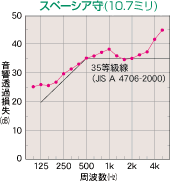 | ※ | 周波数別透過損失測定値はガラス単位での性能値です。窓としてサッシに組み込んだ場合には、この性能値が下がる場合もありますのでご注意ください。 |